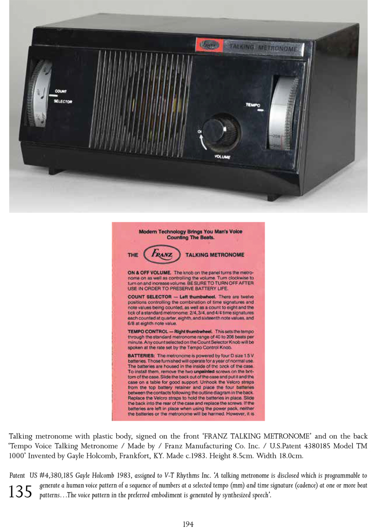Metronomes and Musical Time. Catalogue of the Tony Bingham Collection of metronomes in the Exhibition AUF TAKT! held in the Museum für Musik, Basel from 20 January to 20 August 2017. 2017. size 210mm by 270mm. 224pp. 400 plates, almost all in colour, including pictures of the 179 metronomes with at least one view of each. This catalogue includes a detailed history of the metronome by Anthony Turner. | £40.00